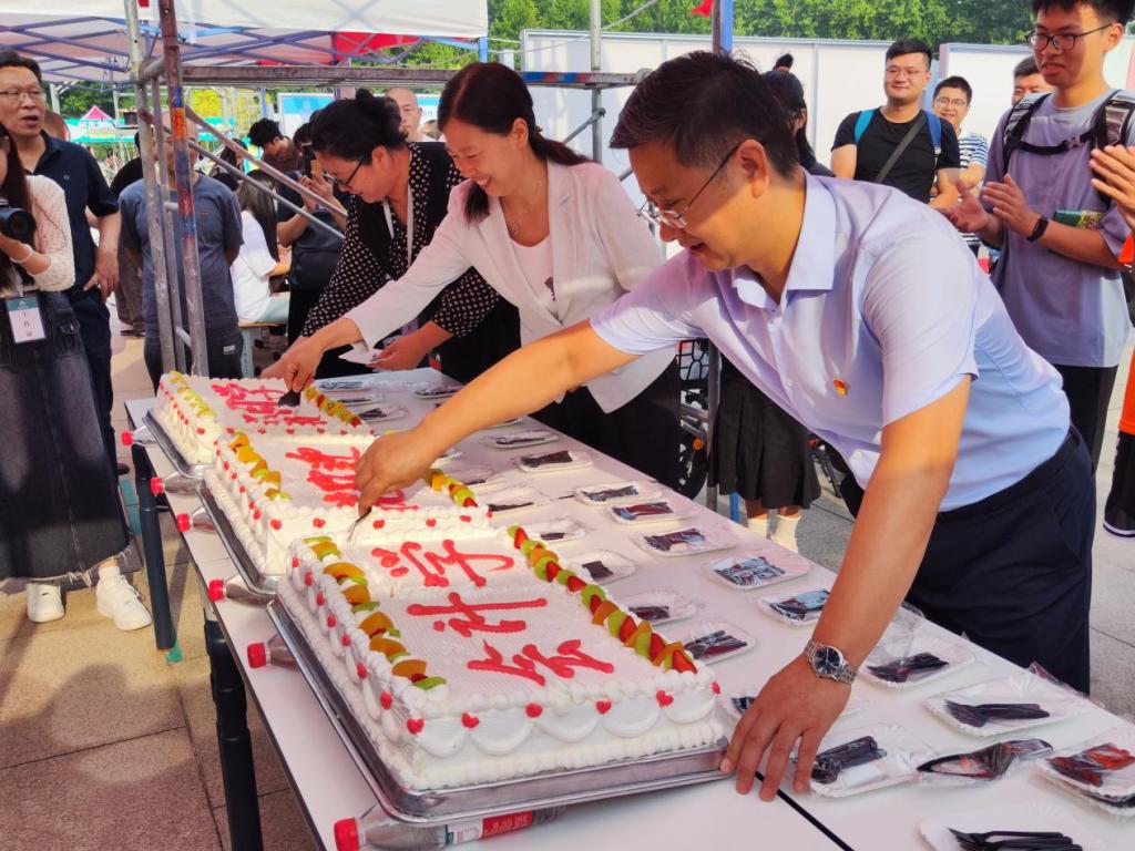 会计学院在报到处设留念墙与时光信箱,新生可用学院准备的明信片写给父母与三年后的自己,还精心准备了蛋糕,为所有新生送上开启新生活的甜蜜祝福,为当天过生日的三位同学送上生日礼物。并召开家校企座谈会,促进家庭与学校、企业的“双向奔赴”。