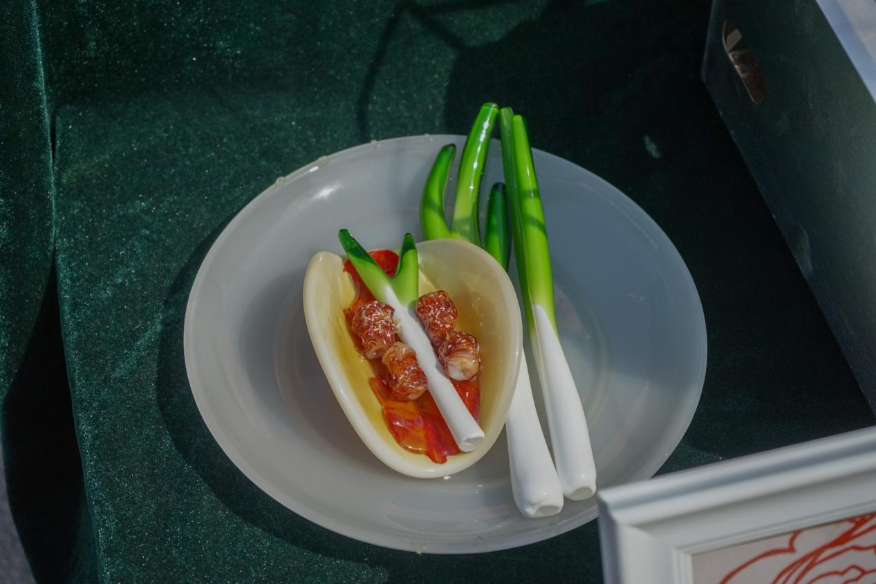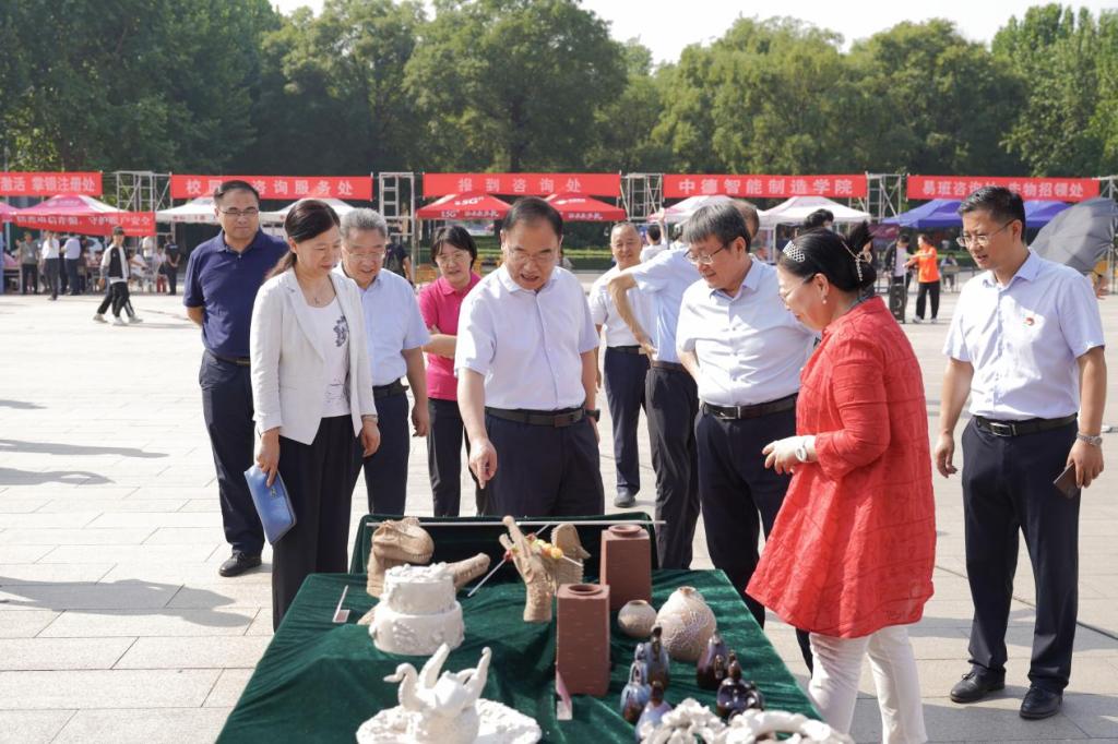 陶瓷琉璃艺术系现场展示陶艺作品,以及用琉璃制作的淄博烧烤“三件套”,向新生们展示陶琉魅力的同时,也展示了淄博烧烤的特色。