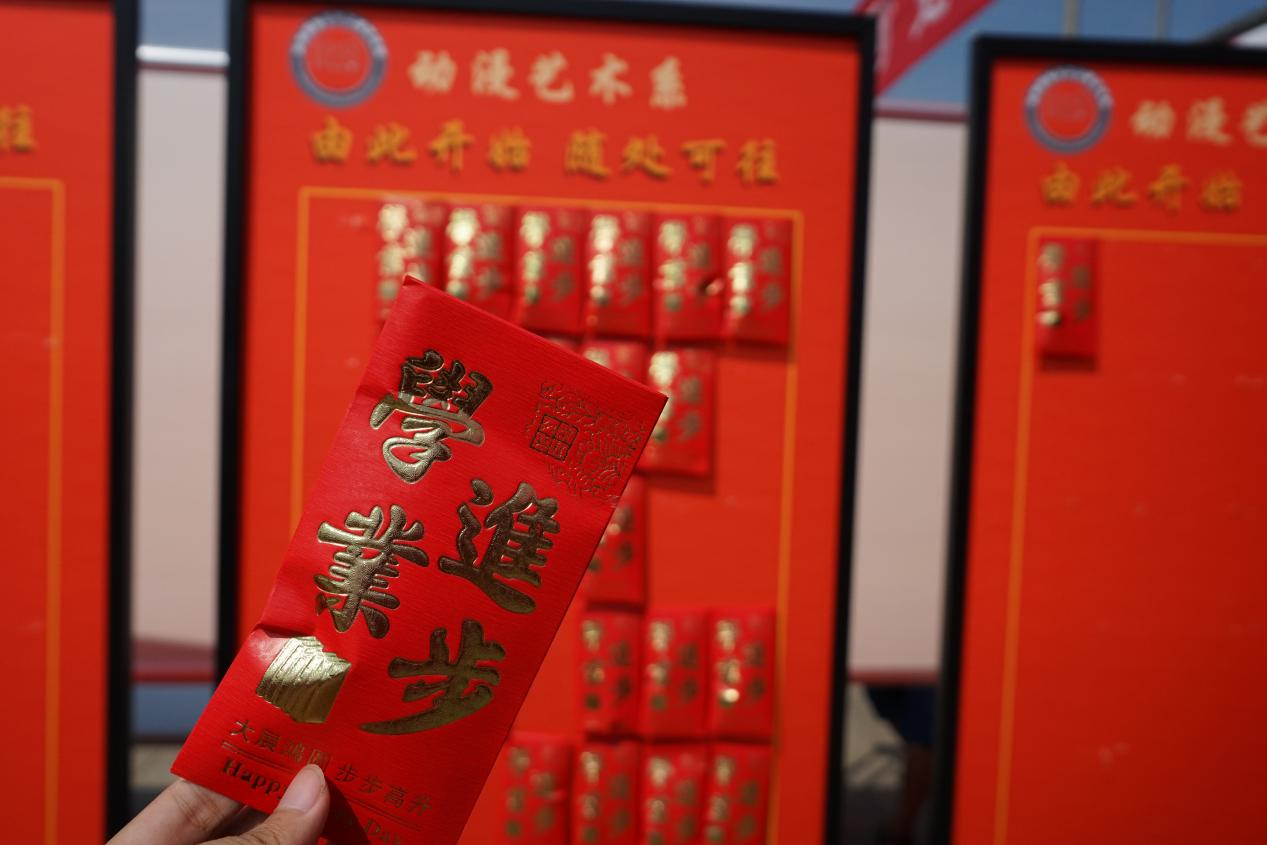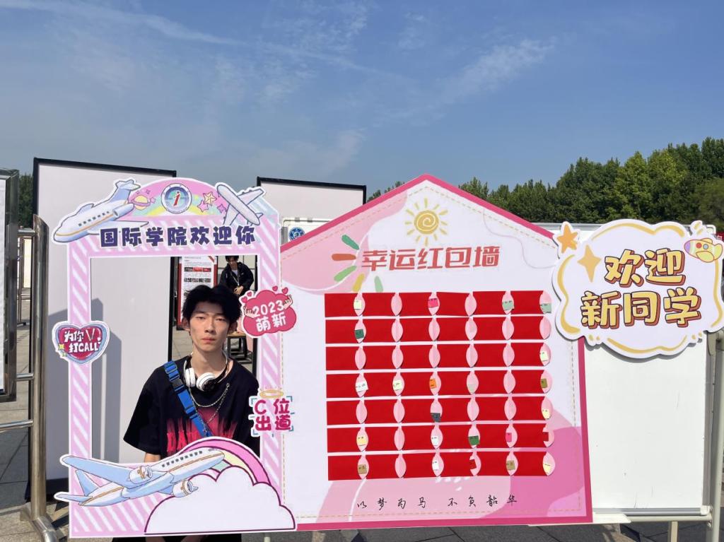国际学院为新生准备了幸运红包墙,红包里的书签寄语激励新生勇攀高峰。床上桌、帆布包、笔记本等奖品助力新生学有所成。报到打卡的照片也将放到《学生成长手册》的第一页,记录他们从青涩到成熟的成长过程。