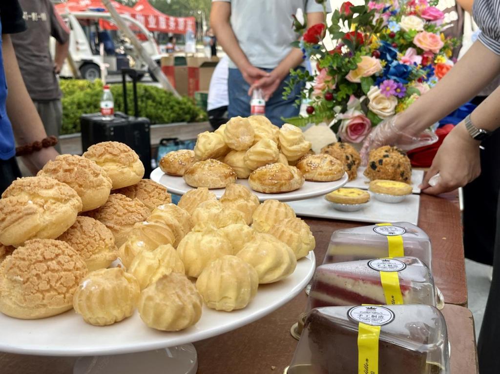 制药与生物工程系以2023级全体新生姓名组成主题展板,共同拼接出“心”的形,以“心”迎新。同时为新同学和家长们精心准备了插花作品以及学长学姐们亲手制作的各类点心,供大家欣赏品尝。