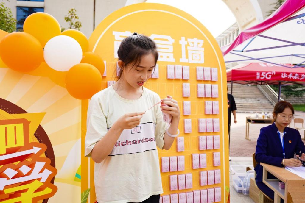 文化旅游系为新生们准备了“盲盒墙”,新生们可以现场选取盲盒,体验开盲盒的快乐。同时还在现场展示茶艺,使同学们对不同种类茶叶的“色、香、味、形”都有了最直观的体验,感受到传统茶文化的艺术魅力。