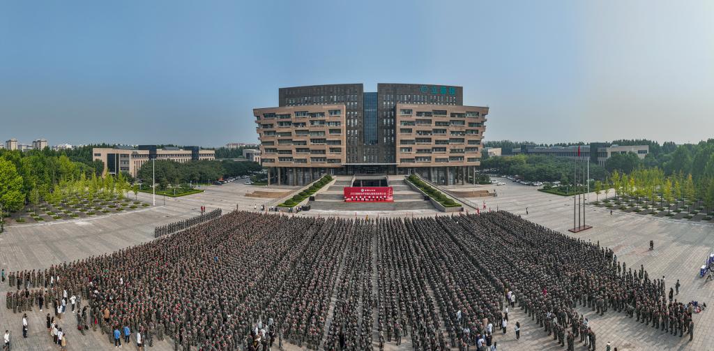 本站讯 9月4日,申搏2023级新生开学典礼暨军训动员大会在北校区立德楼广场举行。校领导、各院系院长(主任)、党总支(支部)书记、分管学生工作负责人、学生科长、2023级全体新生及辅导员(班主任),全体承训教官参加。党委委员、副校长辛爱梅主持。