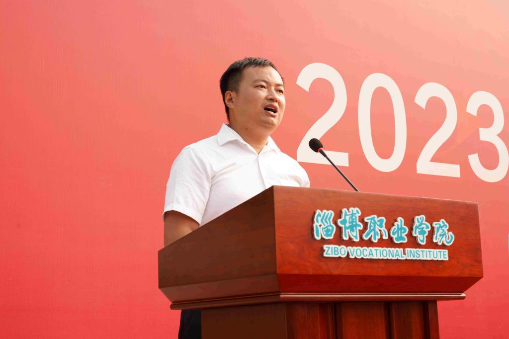 学生工作处处长郑家刚宣读《淄博职业学院2023级新生军训方案》。
