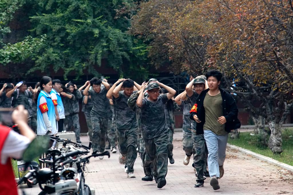 演练开始前,各演练组认真清点人员到位情况、确认演练路线安全畅通。刘晓麟召开了演练动员会,再次明确了此次防空防灾疏散演练的重要意义,讲明演练的程序、内容和纪律要求。梁成文认真讲述了在突发紧急情况避险并撤离现场的方法,重点强调了疏散过程中需要注意的问题和事项。校园内安全人员和教职员工也积极参与到此次演习,现场指导学生们如何低头、蹲下以及保持安静等基本防空姿势,让学生们尽快熟悉应急疏散演练的正确方法,并协助学生们有秩序地按指定路线向集结地撤离。随着防空警报的鸣响,在工作人员和老师们的指导下,同学们听从指挥、迅速反应、紧急疏散,整个演练过程紧张有序、有条不紊,达到了预期效果。