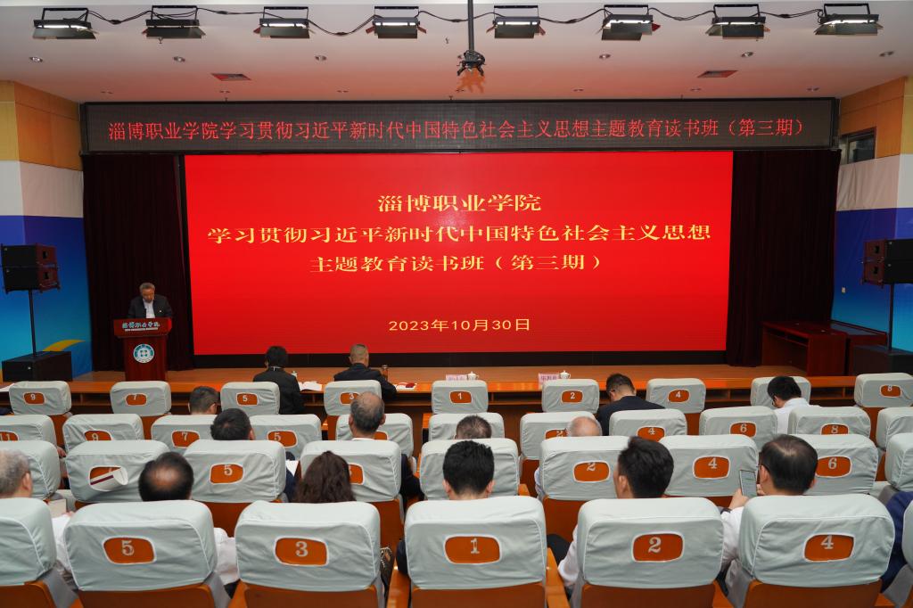 本站讯 10月28日、10月30日,学校举行学习贯彻习近平新时代中国特色社会主义思想主题教育读书班第三期专题学习。这次学习突出“深入学习贯彻习近平总书记关于调查研究的重要论述和对山东工作的重要指示要求、关于本行业本领域的重要讲话和重要指示批示精神”主题,其间,山东社科院哲学研究所副所长颜景高作了“习近平新时代中国特色社会主义思想的世界观和方法论”专题报告;党委理论学习中心组进行了集体学习交流;党委书记刘伟就“树牢和践行正确政绩观,办好人民满意的职业教育”讲了专题党课;党委领导班子成员,各院系党总支(支部)书记、院长(主任)及各处室主要负责同志等参加读书班。