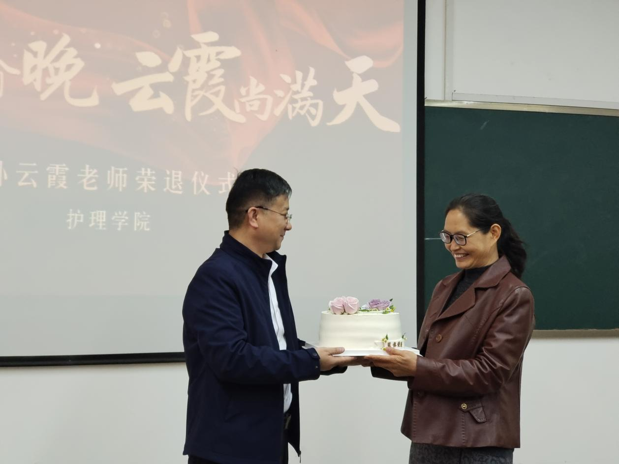 本站讯(通讯员 朱艳华)11月8日下午,学校党委委员、副校长辛爱梅到护理学院参加辅导员孙云霞老师的荣退仪式。学生工作处处长郑家刚,护理学院院长房泽海、相关负责人及团总支学生科全体辅导员、班主任一同参加。