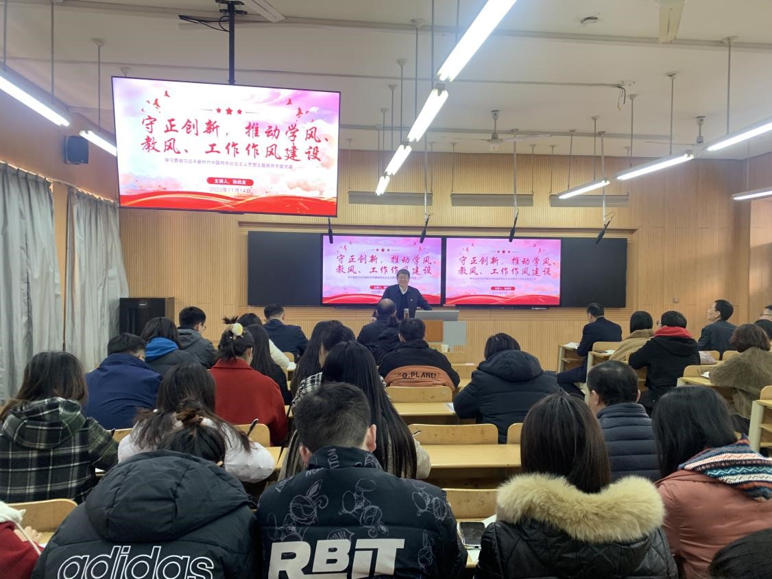 本站讯(通讯员 陈鑫雨)11月14日,学校党委副书记、校长孙启友在西校区A区多媒体教室为护理学院党总支、机关第七党支部全体党员讲授“守正创新,推动学风、教风、工作作风建设”专题党课。