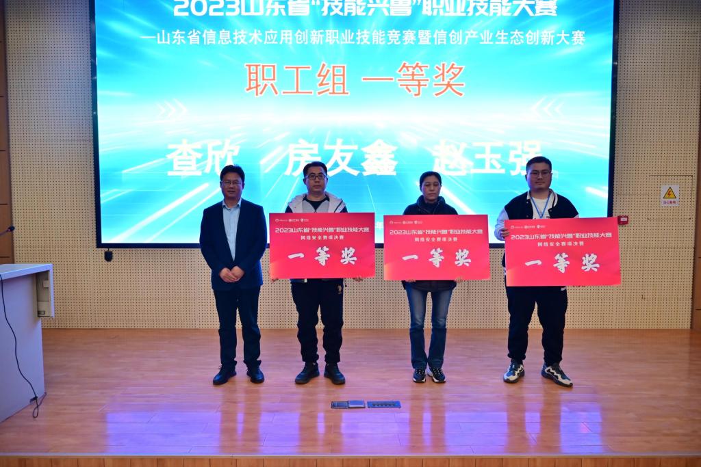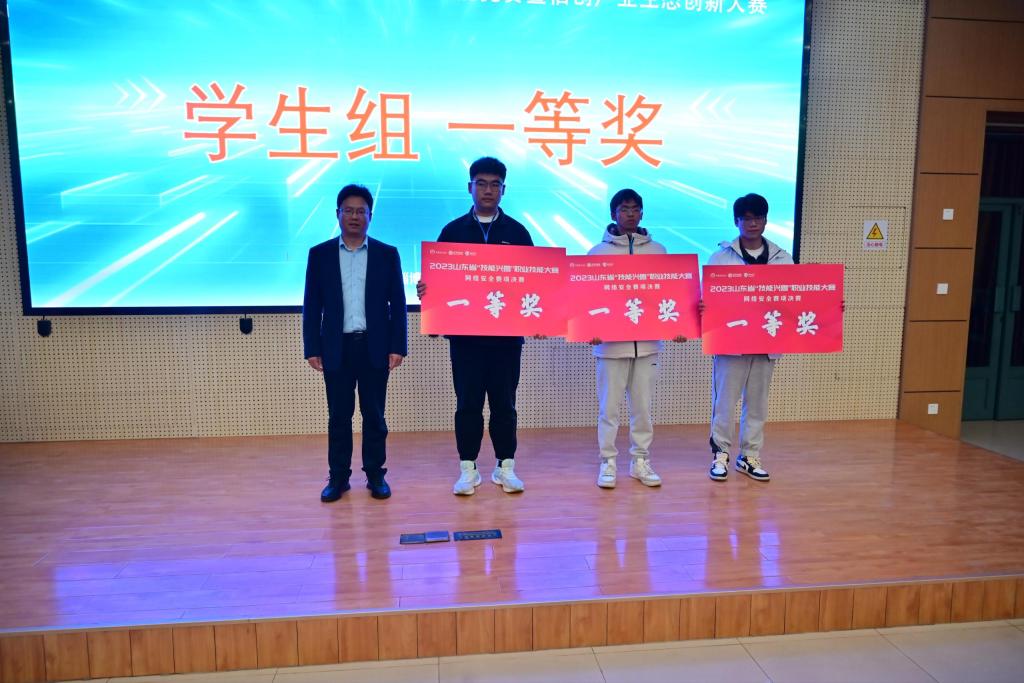 本站讯(通讯员 战会玲)11月23-24日,山东省“技能兴鲁”职业技能大赛——山东省信息技术应用创新职业技能竞赛网络安全赛项决赛在我院圆满闭幕,学院人工智能与大数据学院教师查欣荣获职工组一等奖,教师王馨宇荣获职工组二等奖;学生组荣获一等奖一项、三等奖一项。山东省信息产业协会职业技能认证中心主任董远洋,淄博市委网信办副主任刘建,学院党委委员、宣传统战部部长鹿颖,山东正中信息技术股份有限公司副总经理任强出席闭幕式,人工智能与大数据学院院长孙宾主持仪式。