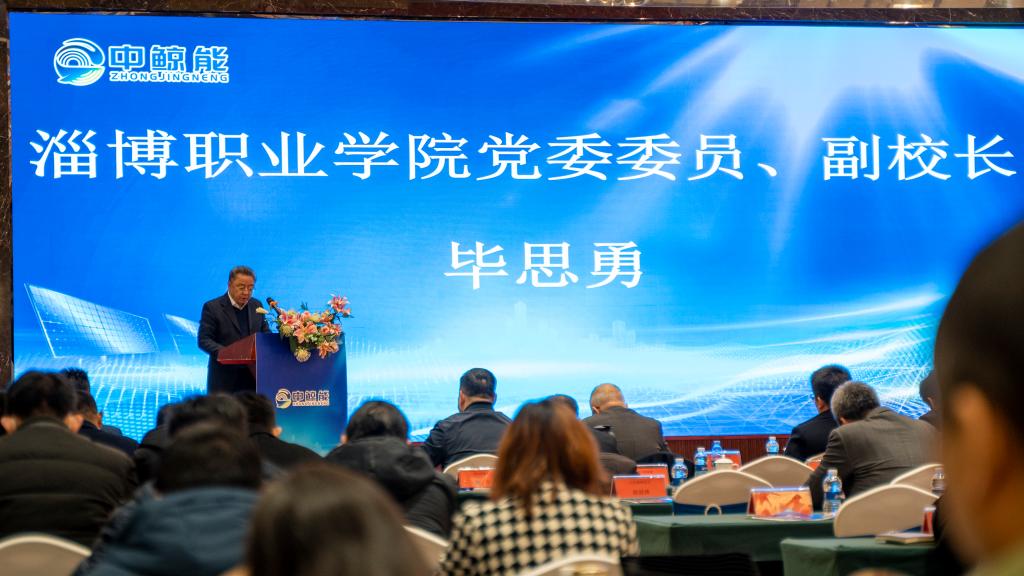 毕思勇代表学院祝贺中鲸能科技集团的成立和论坛的顺利召开,他表示光伏产业具有广阔的发展前景和巨大的市场潜力,光储充技术是未来能源发展的重要方向。淄博职业学院紧跟时代步伐,近期先后牵头成立全国新型电力系统产教融合共同体和新型电力系统产教融合实践中心,切实加强新型电力人才培养,着力为“清洁化、智能化、国际化”电力发展提供充分高效的技能和智力支撑。