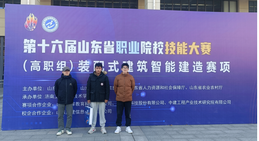 本站讯(通讯员 韩金)12月2日—3日,第十六届山东省职业院校技能大赛-装配式建筑智能建造赛项在济南工程职业技术学院举行,来自全省27支代表队参加比赛。学院建筑工程学院霍鑫龙、崔一帆、王代喜三名同学组成的代表队获得团体一等奖;韩金、孙飞两名指导老师获优秀指导教师称号。