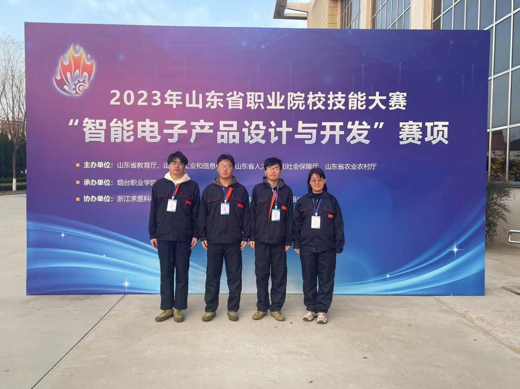 本站讯(通讯员 韩振花)12月8日—11日,2023年山东省职业院校技能大赛“智能电子产品设计与开发”赛项在烟台职业学院举行,来自全省的35支队伍参加比赛。电子电气工程学院由韩振花、杨冰冰、孙昊、张天宇4名师生组成的代表队获得一等奖。