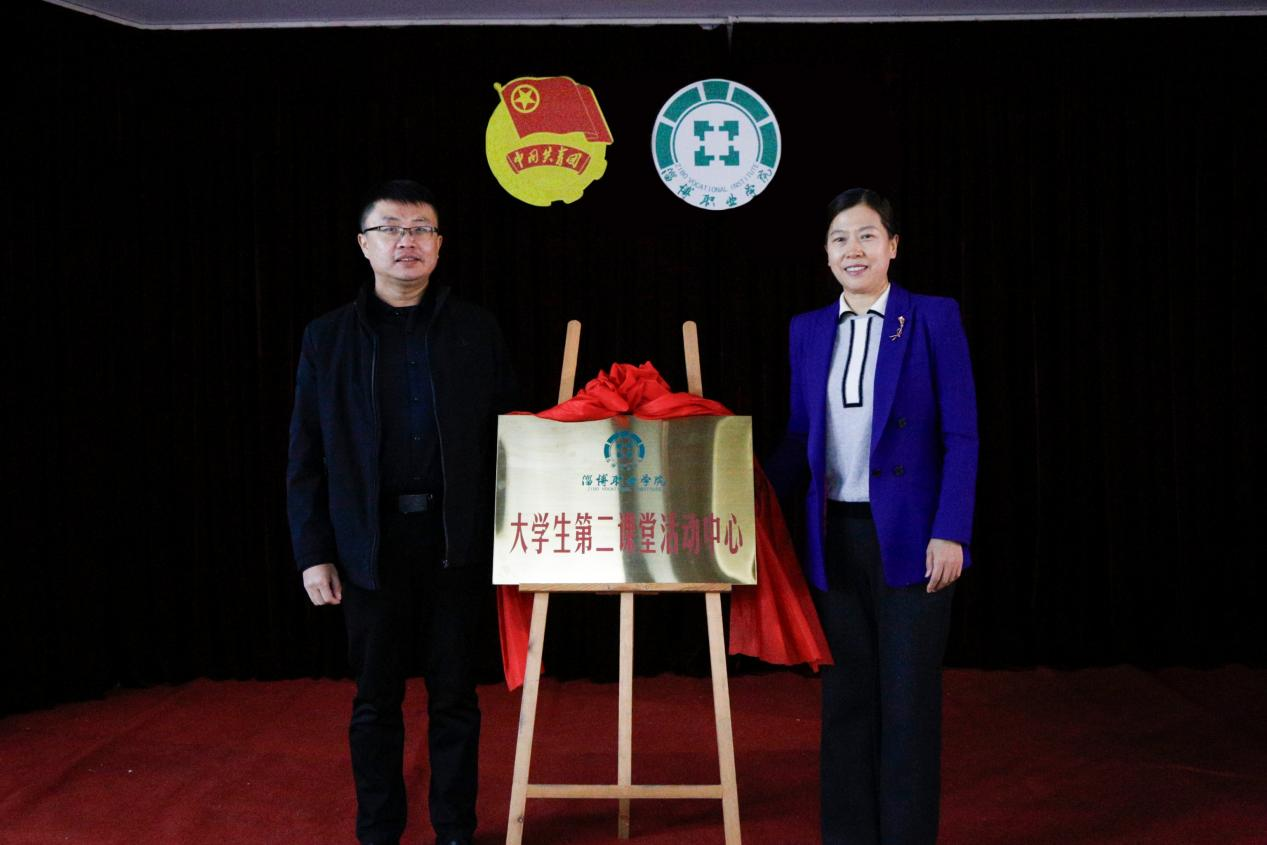 活动伊始,辛爱梅对参与本次活动的领导和来宾表示欢迎与感谢,她表示,中华优秀传统文化是中华民族的根与魂,学校始终把传承优秀传统文化作为第二课堂建设的重要方面,让学生在学校内能够深入了解、切身感受并真正体验传统文化。活动中,辛爱梅与陈抒啸共同为学校第二课堂活动中心揭牌。学院团委副书记项洋与丁磊共同签订了《大学生社会实践基地共建协议书》。