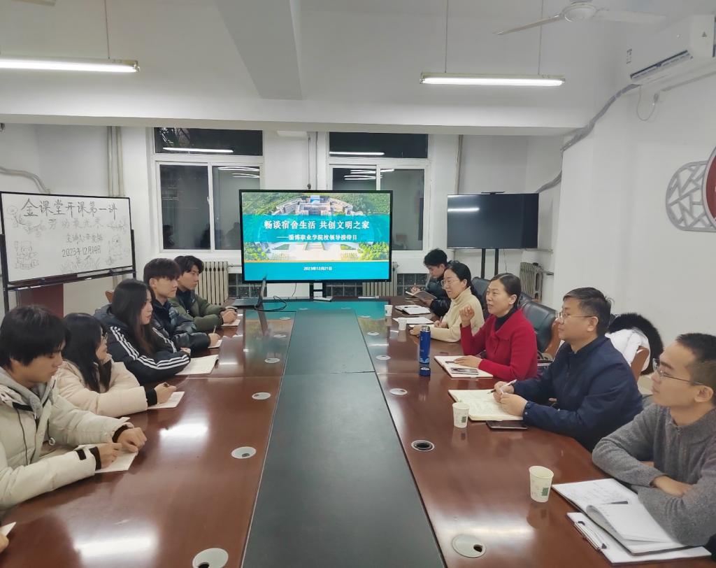 本站讯(通讯员 王亚楠)12月21日,我院在北区“一站式”社区党团活动室组织开展了“畅谈宿舍生活、共创文明之家”暨淄博职业学院院领导接待日活动。学院党委委员、副院长辛爱梅出席活动并作了讲话,院办公室、学生工作处等部门负责人,北区各院系舍长代表等30余人参加了本次活动。