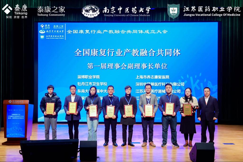全国康复行业产教融合共同体为落实中央办公厅、国务院办公厅《关于深化现代职业教育体系建设改革的意见》等文件要求,在中国职业技术教育学会医药卫生教育专业委员会、全国卫生健康职业教育教学指导委员会和中国国际科技促进会医药卫生教学与研究工作委员会指导下,由泰康之家(北京)投资有限公司、南京中医药大学、江苏医药职业学院牵头成立。共同体拥有159个成员单位,其中学校76家,医院43家,企业33家,出版社、科研机构、行业组织等7家。