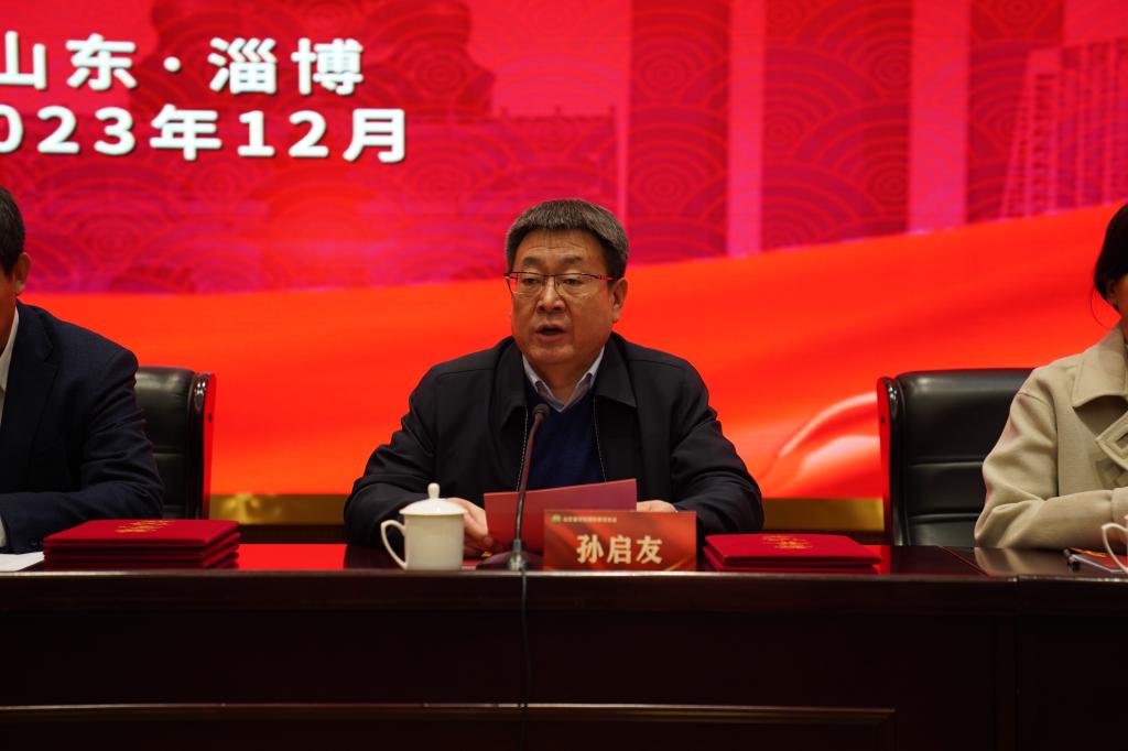 孙启友在致辞中对与会嘉宾表示欢迎,并介绍了淄博职业学院的发展历史及学校开展国防教育工作的情况。同时表示希望通过此次年会的相互切磋、深入交流,与各学校共研共享、互促互进,携手为国防教育积蓄力量,锻造我省国防教育的特色与品牌。