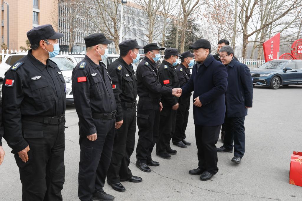 刘伟、孙启友带队到南、北、东、西等四区各物业值守点、门卫等处,详细了解了假期期间校园安全管理、设施修缮、物业服务等情况,对后勤服务和安全保卫相关部门工作人员在寒假期间校园和谐稳定作出的努力表示感谢,对大家过去一年的辛勤工作给予充分肯定,叮嘱大家在工作期间注意防寒保暖,希望大家继续秉持爱岗敬业的态度,全力以赴做好春节期间的安全保障服务工作,并向他们以及家人致以新春的问候和祝福。