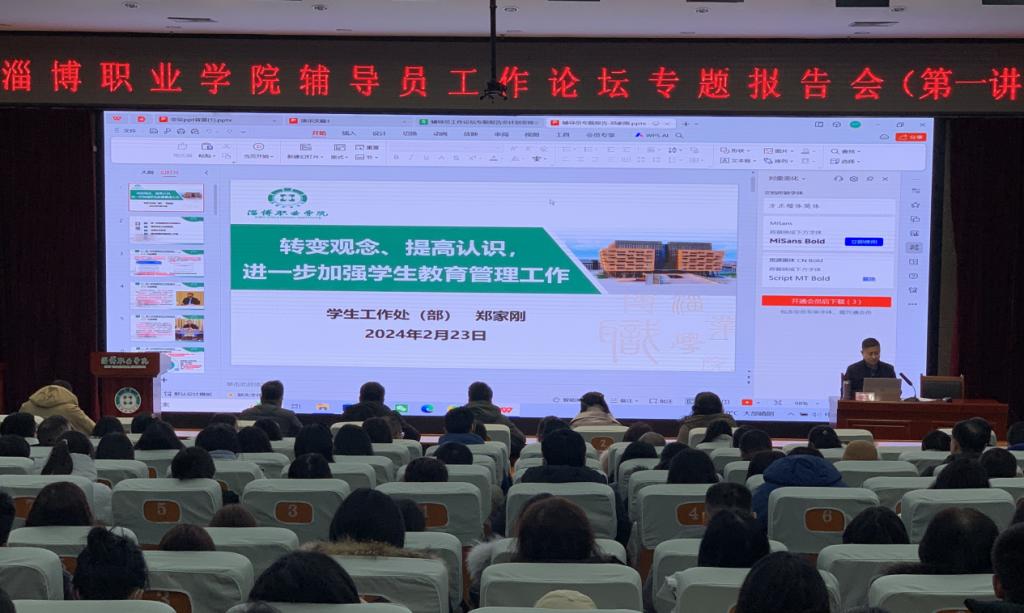 本站讯(通讯员 刘娜娜)2月23日下午,学院在立德楼报告厅举办辅导员工作论坛专题报告会第一讲。本次报告会由学生工作处(学生工作部)处长郑家刚主讲,各院系党总支(支部)书记、学生工作负责人、学生科科长、团总支书记、辅导员、班主任、学生工作处全体人员参加会议。