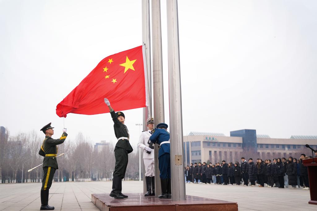 本站讯(通讯员 王国玲 钱菁菁)2月29日清晨,学院在北区立德楼前广场举行2024年春季升旗仪式暨安全开学“第一课”活动。学院党委副书记、院长孙启友以“安全教育”为主题讲授开学“第一课”。学院领导辛爱梅、李富广、毕思勇、鹿颖、朱雯,相关处室负责人,各院系院长(主任)和党总支(支部)书记,学生负责人、团总支书记及800余名青年学生代表参加了活动。