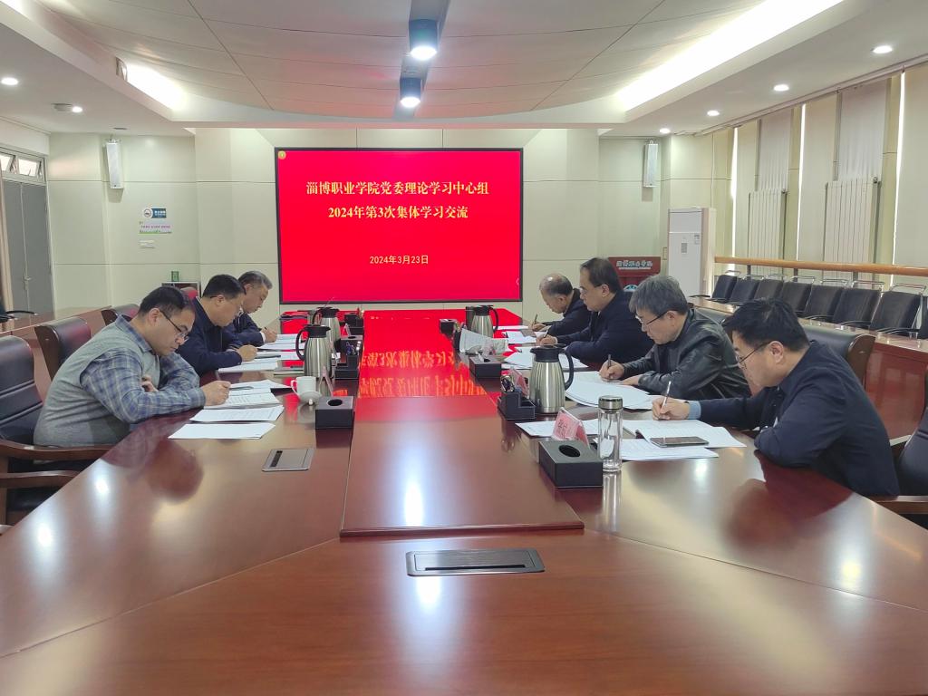 本站讯 3月23日下午,学院党委理论学习中心组举行第3次集体学习,中心组成员刘伟、孙启友、耿玉河、张成山、李厚永、毕思勇、鹿颖参加学习。会议学习了全国两会精神、《中国共产党巡视工作条例》《党史学习教育工作条例》《山东省职业教育条例》。院领导刘伟、耿玉河、张成山围绕学习贯彻落实新修订《山东省职业教育条例》,结合思想和工作实际进行了研讨交流。党委书记刘伟主持会议并讲话。