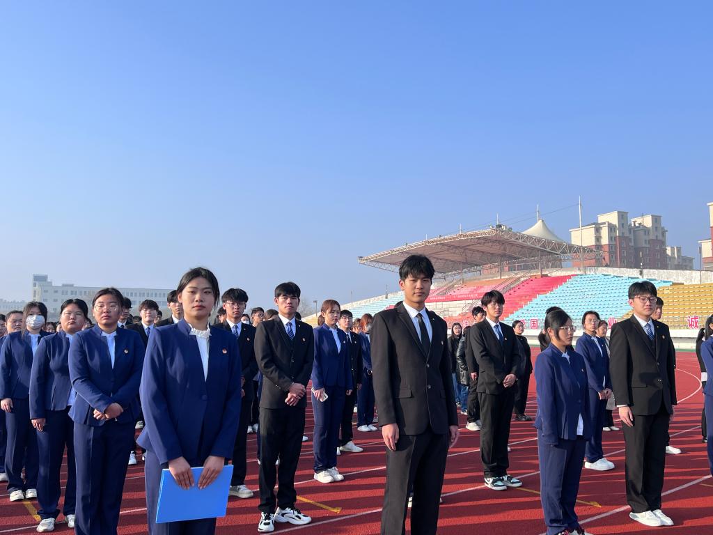 随着雄壮的《义勇军进行曲》奏响,鲜艳的五星红旗冉冉升起,全体师生肃立注目。