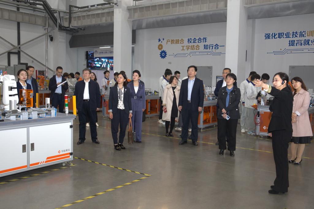 调研团队一行参观了新能源汽车实训中心、智能制造实训中心、陶瓷琉璃艺术系实训中心、劳模工匠学院办公室、鲁中影视动漫产教融合实训基地及产业工人思想政治引领基地,并围绕工匠学院建设开展座谈交流。山东理工大学、山东工业职业学院、山东水利技师学院、淄博市技师学院等淄博市劳模工匠学院联盟院校参加了座谈。座谈会上,孙启友对邹玉薇一行的到来表示欢迎并简要介绍了学院情况,各参会单位围绕工匠学院劳模工匠人才培育、实训实践基地建设、课程设置等相关情况交流了意见和看法,并就加强工匠学院建设的经验做法、工作成效、对策建议和下步打算等进行了讨论。同期参加座谈的还有周村烧饼、中铝山东有限公司、国网淄博供电公司、华光国瓷科技文化有限公司等代表。