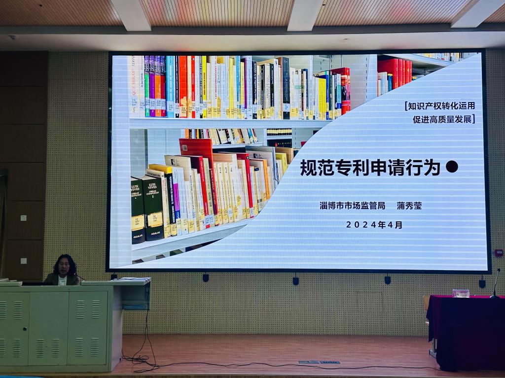 本站讯(通讯员 李欣雨)4月23日下午,学院在西区厚德楼报告厅举办“规范专利申请行为”专题培训会。淄博市市场监管局一级主任科员蒲秀莹受邀作专题培训。培训会由科技与规划发展中心主任高晓琛主持,学院各部门分管科研负责人、科研初审员及教师代表120余人参加了此次培训会。