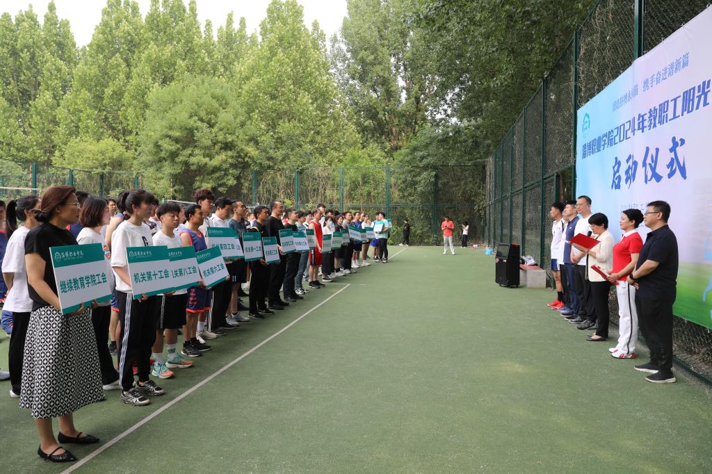 本站讯(通讯员 吕蕾 杜翠翠)5月21日,学院2024年教职工阳光体育活动启动暨教职工篮球比赛、排球比赛开赛仪式在南区排球场举行。学院党委委员、组织人事处处长朱雯,工会主席乔华出席,各二级工会代表队、学院篮球、排球代表队及羽毛球代表队参加。