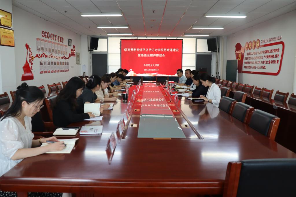 本站讯(通讯员 张琼珲)6月25日,马克思主义学院召开学习贯彻习近平总书记对学校思政课建设作出的重要指示精神座谈会。学院党委委员、副院长辛爱梅出席会议,马克思主义学院科级以上干部、部分教师代表参加会议。座谈会由马克思主义学院院长胡业冰主持。