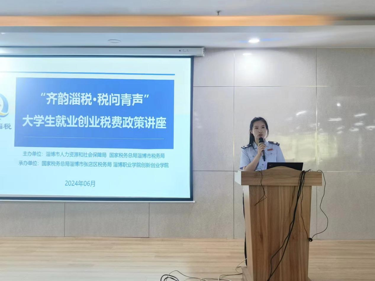 本站讯(通讯员 曹潇文)6月28日下午,学院联合淄博市人力资源和社会保障局、淄博市税务局、张店区税务局等部门在稷下创客汇路演大厅举办“齐韵淄税·税问青声”大学生就业创业税费政策讲座。本次讲座由“齐韵淄税•税问青声”宣讲团成员刘晓彤主讲。学院90余名有创业意愿的学生参加讲座。