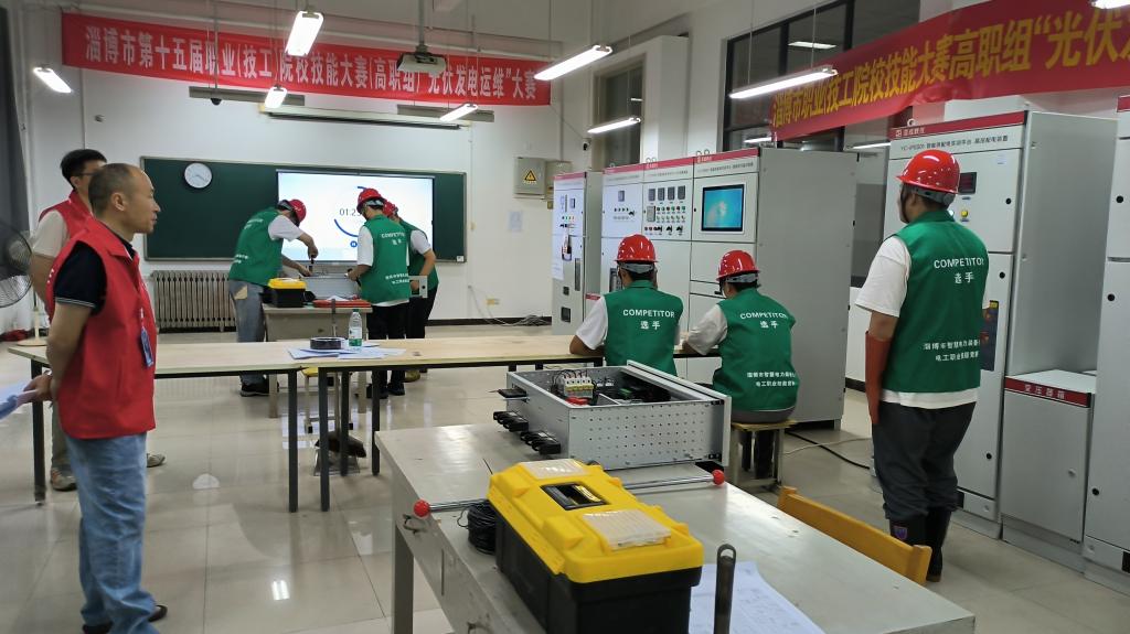 光伏发电运维竞赛赛项首次进入淄博市职业(技工)院校技能大赛,来自山东水利技师学院、山东工业职业学院、山东轻工职业学院等4所职业院校的20多位选手,在比赛过程中,展现出了高超的技艺和严谨的作风。竞赛内容紧扣光伏发电运维的核心技能,包括低压配电系统的设计、安装与运维,电网设计、检修、运维与实施,电力系统运行与控制,职业素养等四部分。