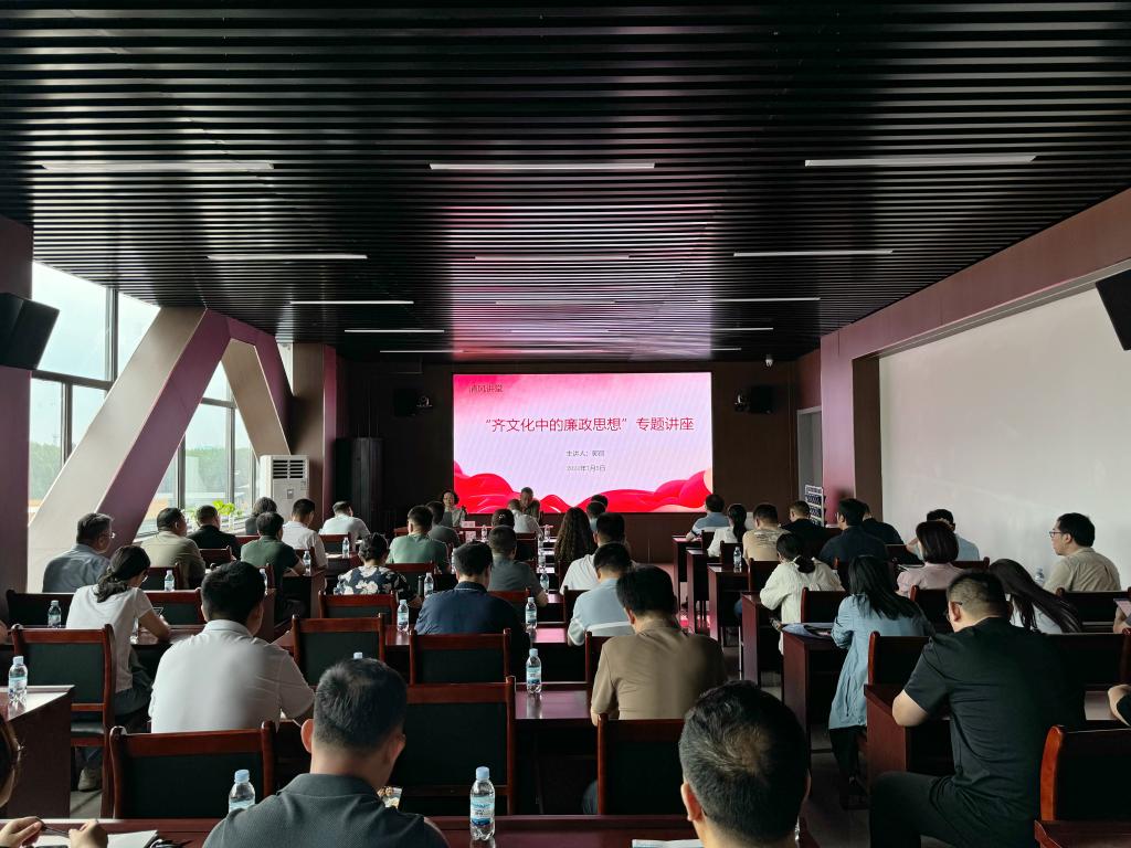 本站讯(通讯员 徐述杰)7月5日下午,学院纪委监察专员办公室在北区匠技楼D506室举办“齐文化中的廉政思想”专题讲座,此次讲座邀请了稷下研究院退休教师郭丽教授主讲,学院党委委员、纪委书记、监察专员李富广出席,学院党风廉政建设监督员、纪委监察专员办公室工作人员共计50余人参加。纪委副书记焦玉雷主持活动。