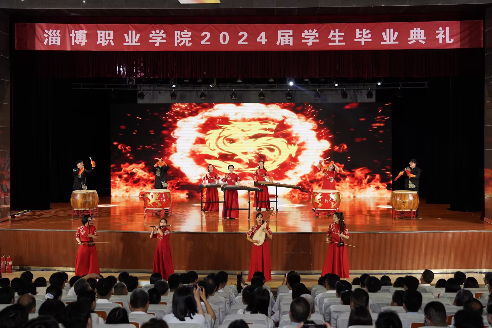 学院闻韶民乐团、大学生艺术团带来的民乐合奏《象王行》,歌舞《青春向太阳》祝福所有的淄职学子鹏程万里、逐梦未来。暖场视频中,同学们豪情满怀的“宣言”和老师们一句句温馨的祝福,让三年的时光卷轴在眼前徐徐展开,全场师生感受到浓浓的温情。