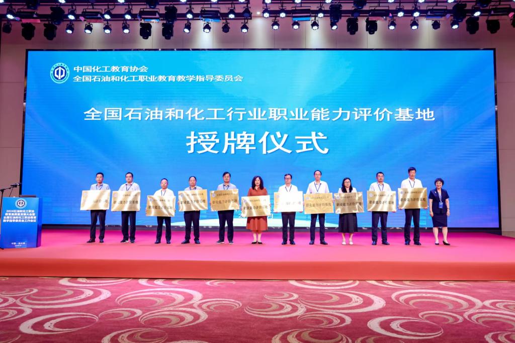 本站讯(通讯员 孟海涛)7月11-13日,石油和化工职业教育高质量发展大会暨全国石油和化工职业教育指导委员会工作会议在连云港召开。会议期间对入选全国首批石油和化工行业职业能力评价基地的11家单位进行授牌,我院材料与化学工程学院荣获首批石油和化工行业职业能力评价基地。