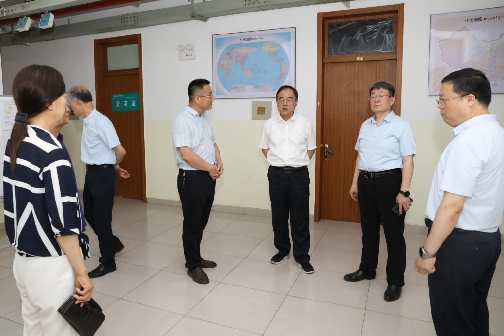 刘伟、孙启友一行对学院智慧校园建设施工现场、教学楼、食堂、学生公寓、实验实训室、创业基地、留学生公寓、超市等场所进行了全面细致的检查,重点对暑期施工项目的安全管理进行了指导,并现场听取了相关部门负责人就暑假期间安全风险防范工作情况汇报。