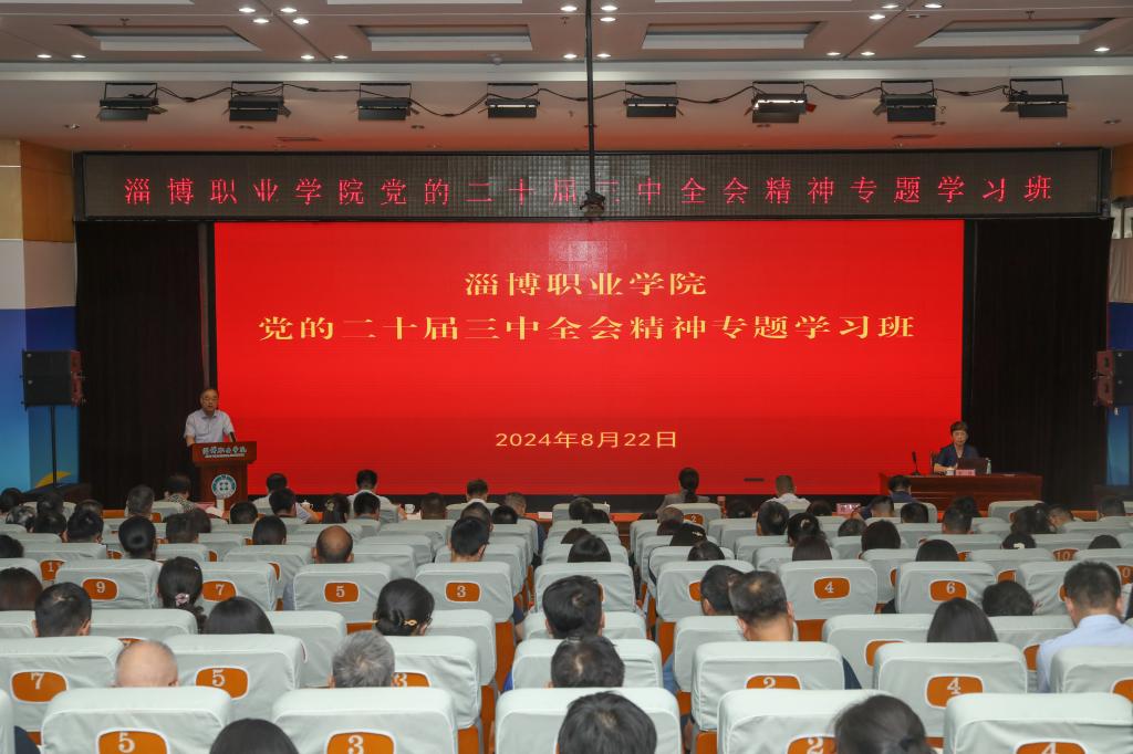 本站讯 8月22日下午,学院党的二十届三中全会精神专题学习班开班,邀请中共淄博市委党校李萍教授作专题辅导报告,党委书记刘伟主持并作动员讲话,学院党委领导班子成员、科级及以上干部参加。