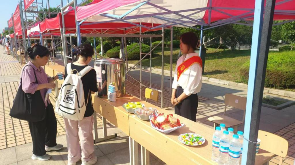 后勤服务管理处携手合作企业设置迎新服务站,为新生和家长免费提供矿泉水、糖果等,并提供爱心专车为新生搬运行李。各餐厅根据各自特色,准备了丰富多彩的迎新活动,为新生及家长免费提供绿豆汤等;校医院在做好医疗保障、健康宣教服务的同时,联合属地疾控部门、合作医院设置检测咨询服务台,为新生及家长们创新开展血压、血糖和艾滋病等检测、咨询服务。
