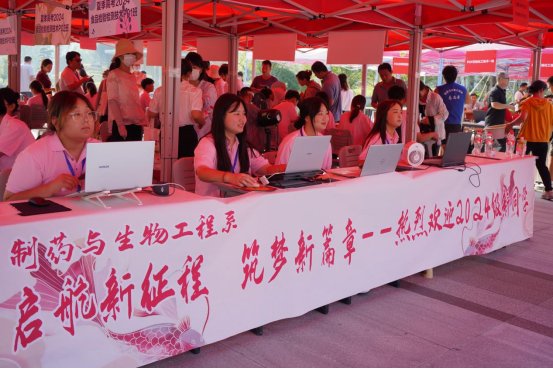 制药与生物工程系提供“一站式”服务,从入校引导到顺利入住宿舍,让新生入学无忧。在专业展示区,新生与家长品尝了师生制作的美味糕点,既缓解了路途的疲惫,也直观展示着院系的专业特色,激发新生对专业的兴趣。