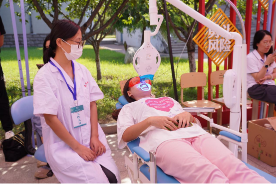 医学技术学院准备了特色的地贴——“梦想之路”,并在现场进行学生作品展示,包括口腔医学技术专业的全口义齿排列、牙齿雕刻作品展示、专业伤口包扎和医学图谱作品展示等;同时将专业知识活学活用,为新生和家长提供免费的口腔健康保健检查和牙齿美白体验。
