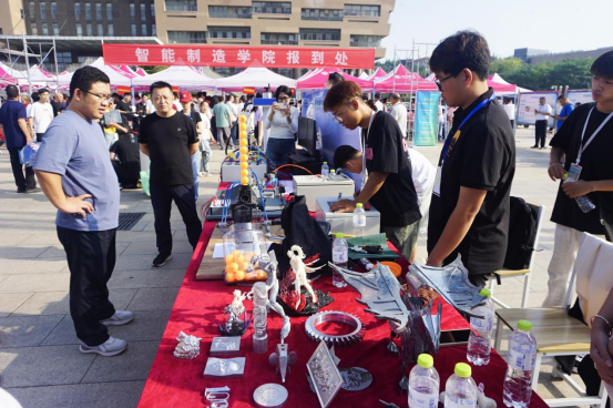 智能制造学院精心打造“家长服务中心”,集专业咨询、细致答疑、便捷行李寄存等功能于一体,为家长提供一站式服务体验。同时举办家长交流会,搭建起家校沟通的桥梁,共同助力学生成长。同时,租赁了环保三轮车作为新生转运车,方便新生携带行李。此外,特别设置了“专业展示区”,通过展示大赛获奖作品等直观地向新生们展示学院在智能制造领域的卓越成就和深厚底蕴。