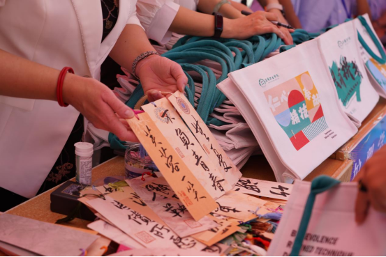 护理学院为新生精“心”准备了四级词汇书、英语单词本和入学大礼包,礼包内含精心设计的帆布包、护士表及一本“学院绿”入学手册。同时在现场为新生们用毛笔书写励志书签,教师与班内同学碰拳互动变出糖果,为新生创造小惊喜。