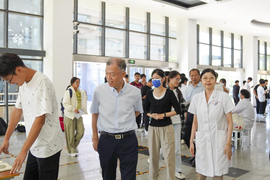 耿玉河来到2024级新生体检现场,仔细查看体检流程和各体检项目组织实施情况,详细询问体检进度、人员安排和物资调备等情况,对全体医务人员、志愿者们的辛勤付出和热情服务给予充分肯定。耿玉河指出,新生入学健康体检是及时发现潜在健康问题、做好校园疾病预防与控制的重要举措,是保障学生身体健康和学校正常教育教学秩序的基础。校医院和相关部门,要统筹协调、推进各项工作落实落细,确保体检规范、平稳有序开展。