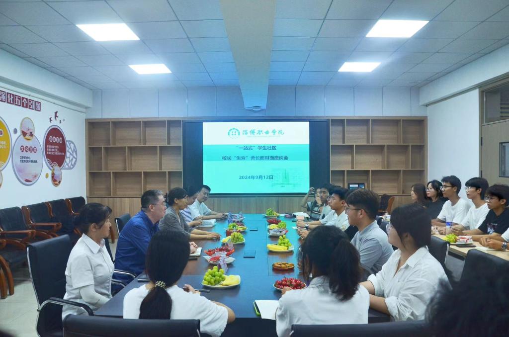 本站讯(通讯员 刘妍)9月12日,“生音”面对面院领导接待日“寝室长座谈会”活动在北区“一站式”学生社区4号公寓党员活动室举办。党委委员、副院长辛爱梅与各院系30余名2024级新生寝室长代表进行了亲切交流,学生工作处、丹田物业公司相关人员参加了本次活动。