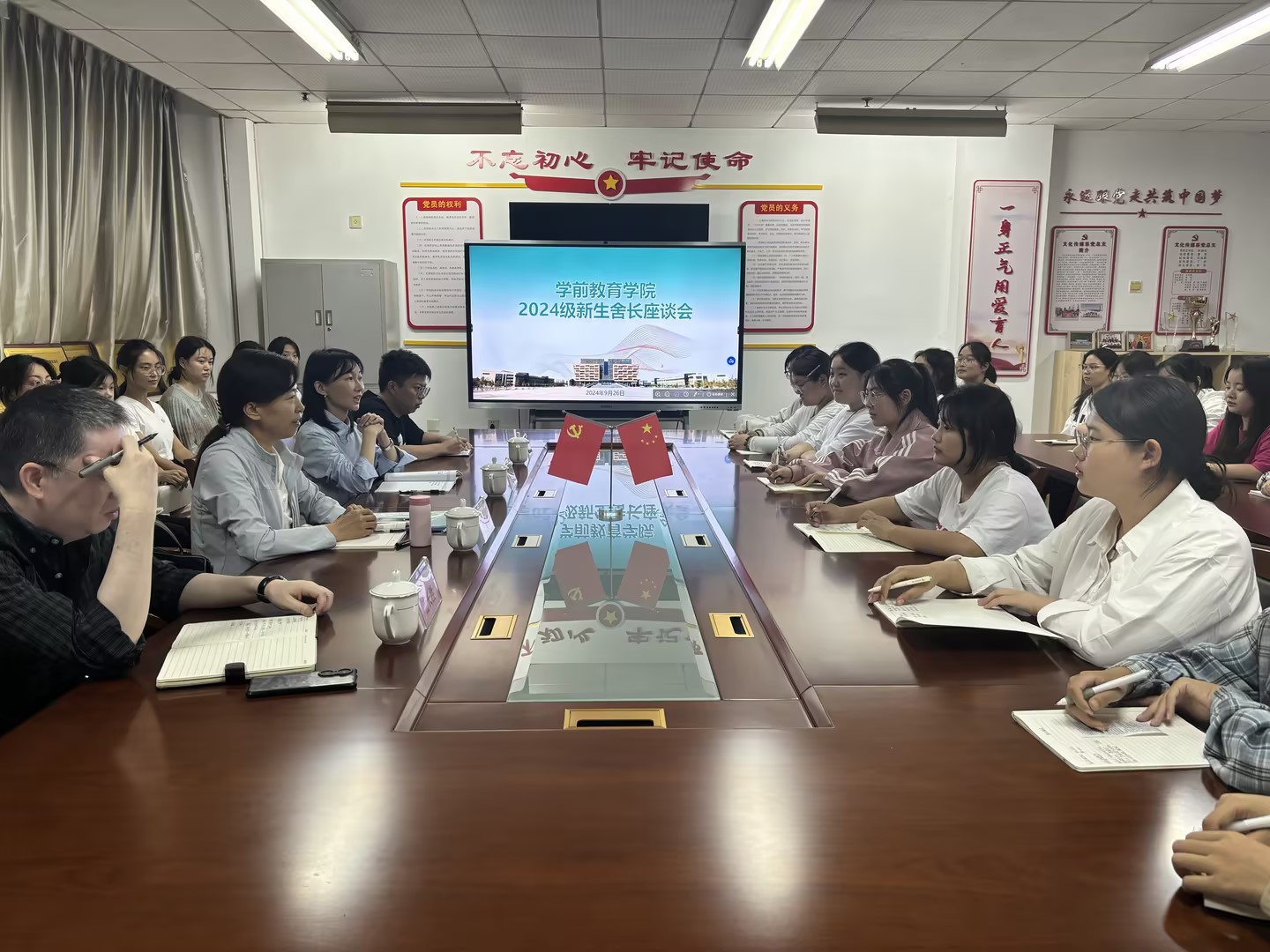 本站讯(通讯员 薛程文)9月26日晚,2024级新生寝室长座谈会在学前教育学院党员活动室举行。党委委员、副院长辛爱梅与来自学前教育学院的71名新生寝室长进行了亲切交流。学前教育学院、学生工作处相关人员一同参加了本次座谈活动。