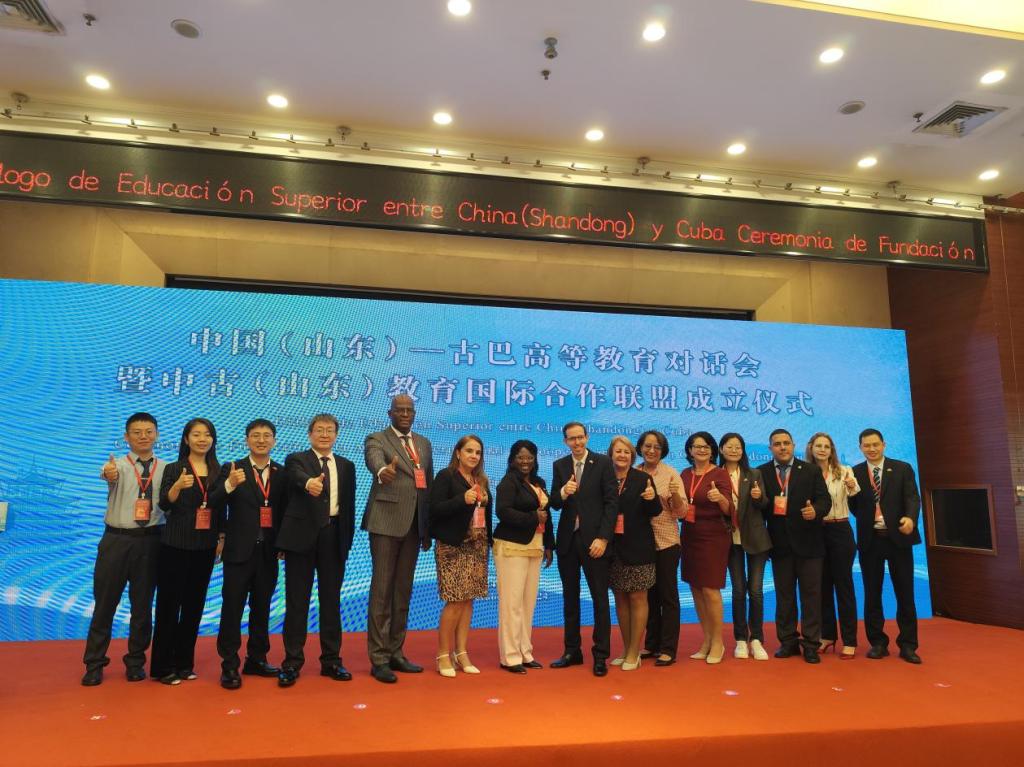 本站讯(通讯员 焦彬)10月17日,中国(山东)-古巴高等教育对话会暨中古(山东)教育国际合作联盟成立仪式在聊城举行。由淄博职业学院、古巴哈瓦那科技大学、意科特古巴公司共建的淄博职业学院“古巴-班·墨学院(意科特)”在会上揭牌。党委副书记、院长孙启友参加对话会,与古巴哈瓦那科技大学校长玛莎·杜尼亚·德尔加多·达佩纳、意科特经贸有限公司副总经理王建平就“班·墨学院”建设运营进行了深入交流。