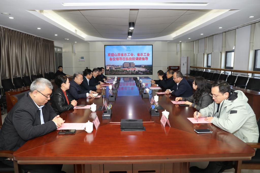 本站讯(通讯员 杜翠翠)11月6日,山西省总工会党组书记、常务副主席梁敬华,山东省总工会党组成员、副主席卯金涛一行来我院就劳模工匠学院建设情况进行调研。市总工会党组书记、常务副主席苏嗣君陪同,学院党委副书记、院长孙启友,党委委员、副院长毕思勇,党委委员、组织人事处处长朱雯,工会主席乔华参与接待。