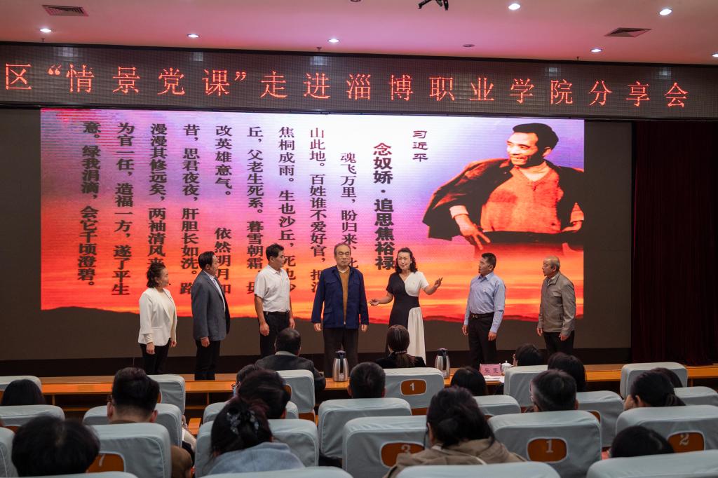 本站讯(通讯员 张杰伟 张延飞)为增强党员党性修养,坚定学党史、颂党恩、跟党走的理想信念,11月5日下午,组织人事处与动漫艺术系在学院立德楼报告厅联合举办了博山区“情景党课”走进淄博职业学院分享会。学院党委委员、副院长辛爱梅出席活动并讲话,党委委员、组织人事处处长朱雯主持活动,博山区委区直机关工委书记魏其宁参加活动,各院系党总支(直属党支部)书记、组织员以及各院系入党积极分子代表、动漫艺术系教师及全体新生等近500人观看了展演。