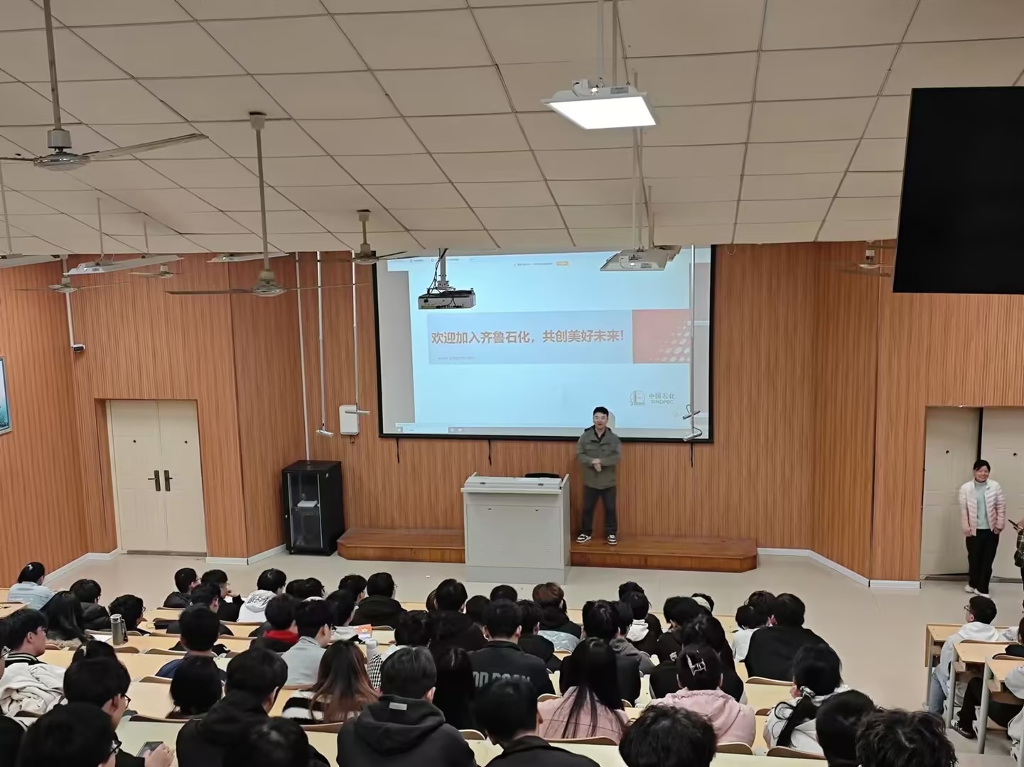宣讲过程中,学生们表现出了极大的兴趣和热情,积极提问,现场氛围活跃。通过此次宣讲会,学生们不仅加深了对齐鲁石化公司文化的理解,也为未来的职业发展提供了方向。