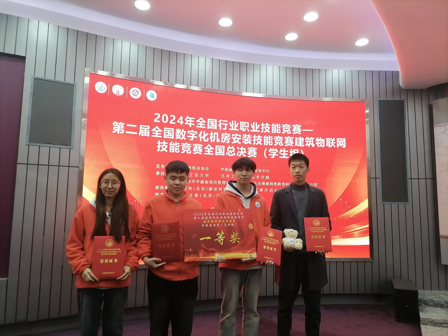本站讯(通讯员 吕君毅)11月9日,由住房和城乡建设部人事司指导,中国建筑业协会和中国就业培训技术指导中心联合主办的2024年全国行业职业技能竞赛——第二届数字化机房安装技能竞赛全国总决赛在北京成功举办,来自全国的本科、高职院校共计130余名选手参赛。建筑工程学院学生杨清文、闫欣、闫春蕾以高职组总分第一的成绩获得总决赛一等奖。