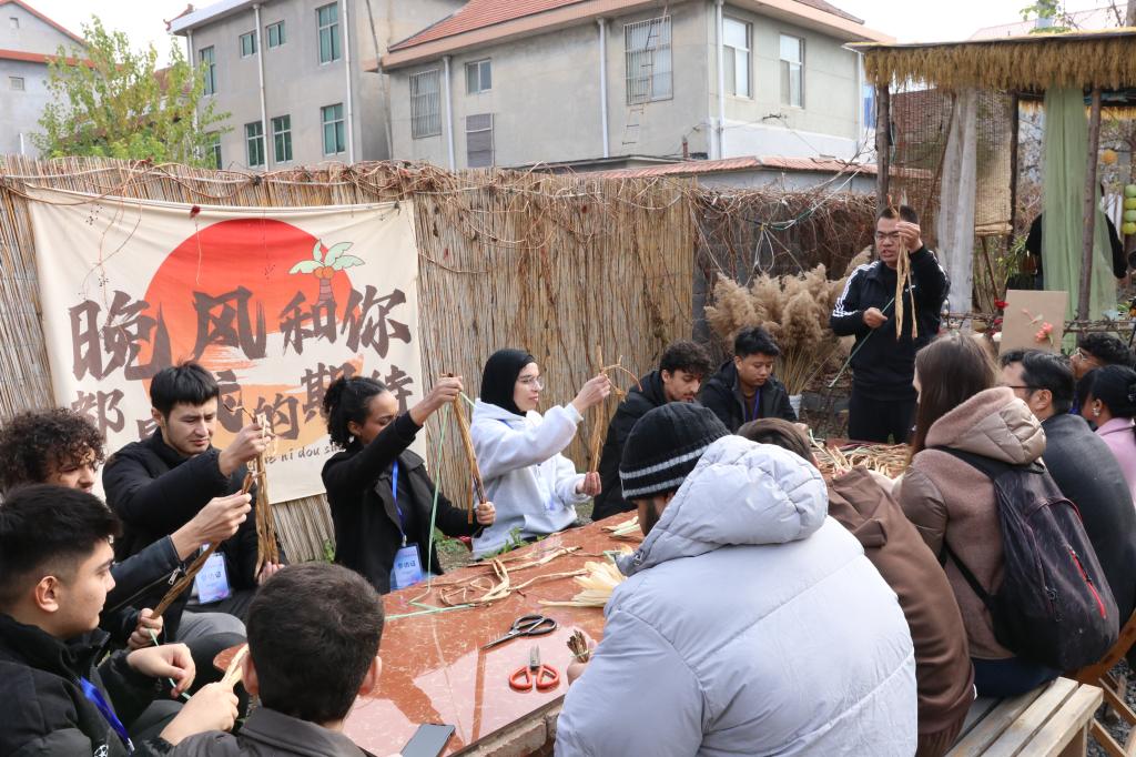 在桓台马踏湖国家湿地公园,一行人泛舟马踏湖之上,感受“北国江南”的湿地风光。在非遗技艺田氏草编体验现场,留学生在田氏草编非物质文化遗产传承人田孝滨的带领下,拿起草编进行体验制作,短短20分钟时间,就编织出了一条“草编小鱼”。