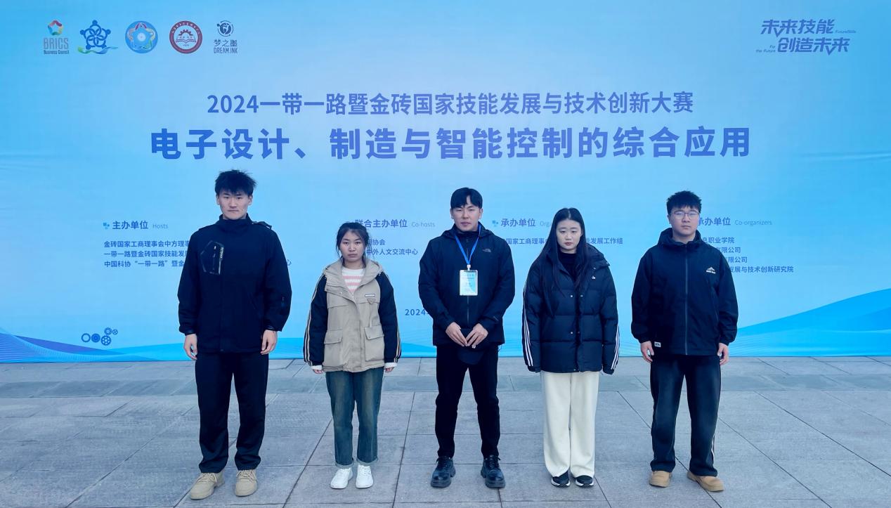 本站讯(通讯员 韩振花)11月29日-12月1日,2024一带一路暨金砖国家技能发展与技术创新大赛之电子设计、制造与智能控制的综合应用赛项全国总决赛在江苏电子信息职业学院隆重举行。来自全国各地的49支代表队参加了比赛,电子电气工程学院赵化晨、崔国豪、付文欣、闫春月4名学生组成两支代表队参赛,均获铜牌。